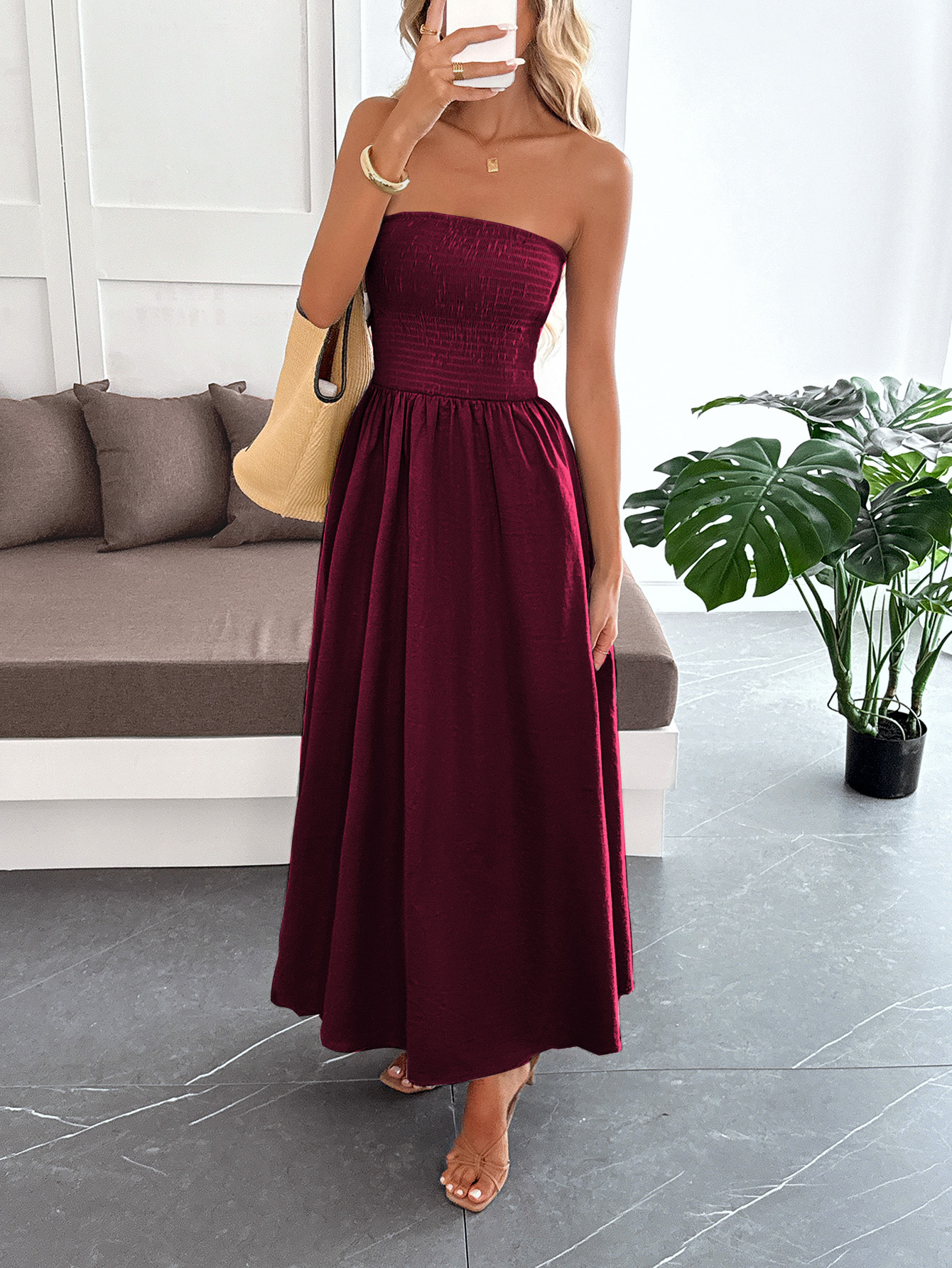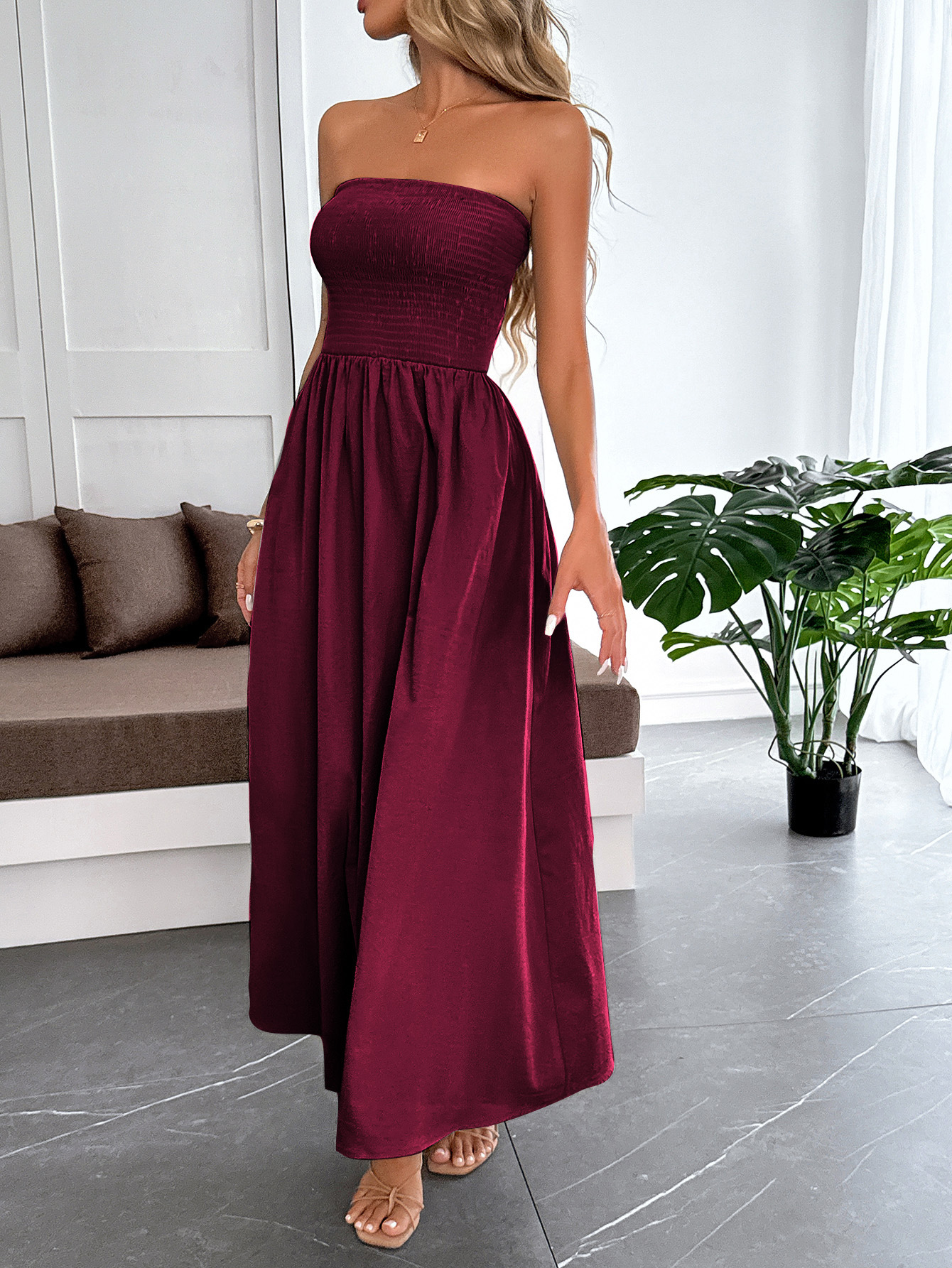 Tube Top Waist-cinching Dress For Women